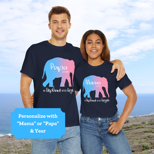 Mama/Papa Est Year Elephant Never Forgets—Baby Loss Remembrance (unisex t-shirt)