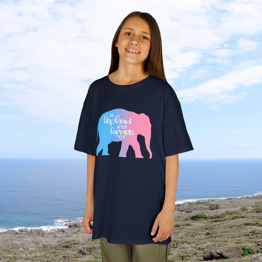 Gradient Elephant Never Forgets—Baby Loss Remembrance (unisex child's t-shirt)