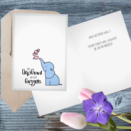 Cartoon Elephant Never Forgets—Baby Loss Sympathy & Remembrance (greeting card)