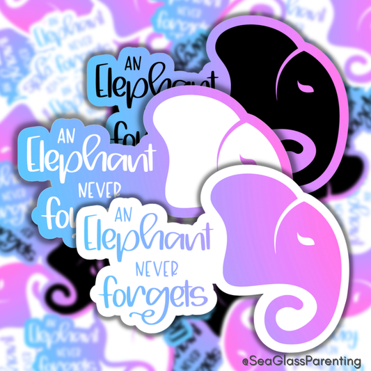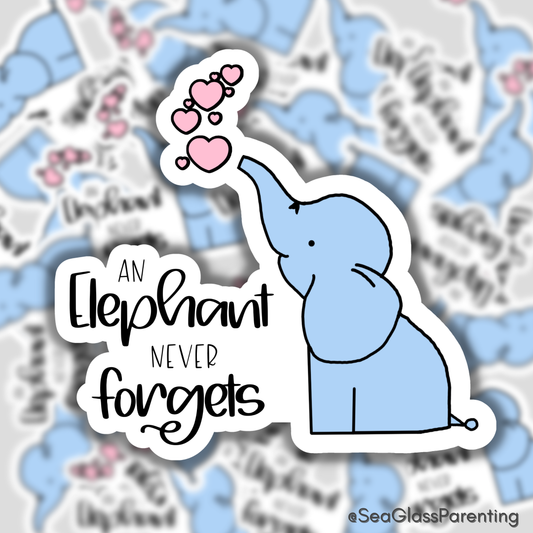 Cartoon elephant never forgets; Cute cartoon elephant—Baby Loss Remembrance (vinyl sticker)