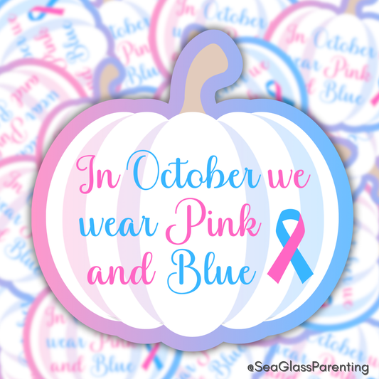 White Pumpkin In October we wear Pink and Blue—Baby Loss Awareness (vinyl sticker)