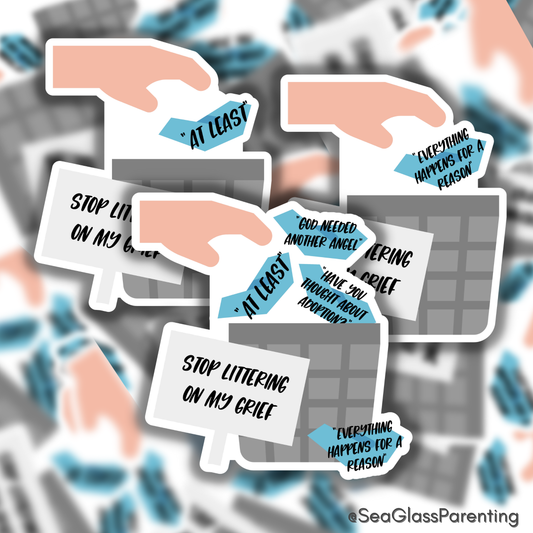 Platitudes in the Trash, Stop Littering on my Grief—Grief Awareness and Education (vinyl sticker)