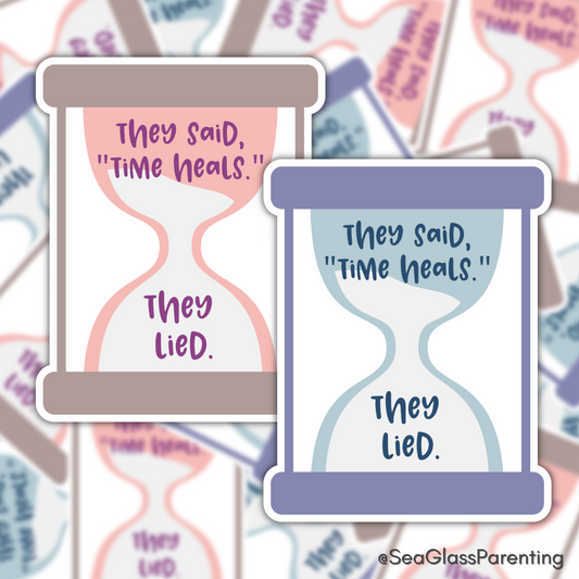 They said, "Time Heals." They lied—Life After Tragedy, Trauma, or Loss (vinyl sticker)