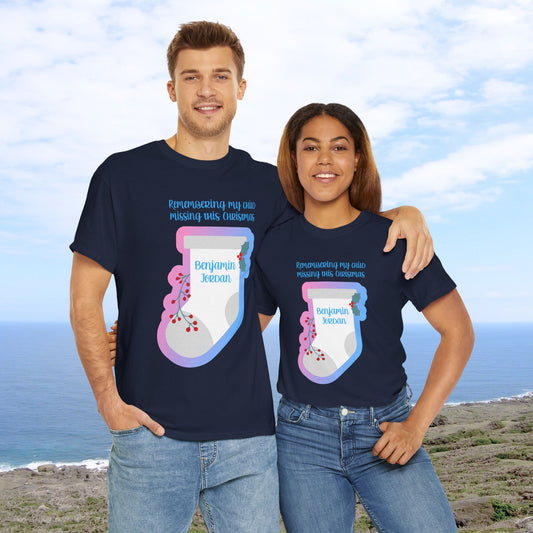 White Stocking Remembering my Child this Christmas; Personalize w/Name—Baby Loss Remembrance (unisex t-shirt)
