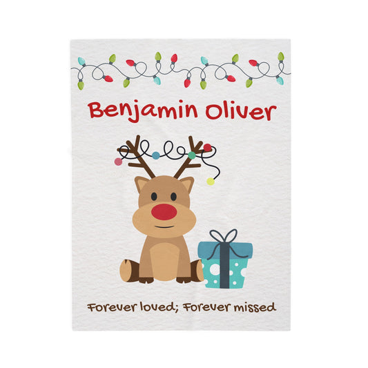 Reindeer Holidays Lights Personalizable w/Name—Baby Loss Remembrance (minky velveteen blanket)