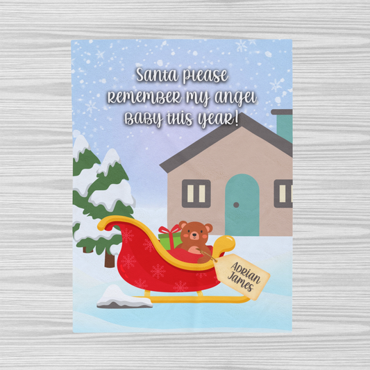 Santa please remember my angel baby w/Sleigh, Personalizable w/Name—Baby Loss Remembrance (minky velveteen blanket)