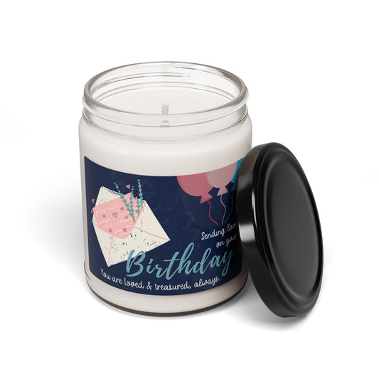 Floral Envelope w/Balloons, Sending Love on Your Birthday—Memorial Baby Birthday (9 oz soy candle)