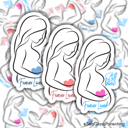 Stillborn; Forever Loved Word Art w/Mama's Pregnant Belly—Baby Loss Remembrance pink blue (vinyl sticker)