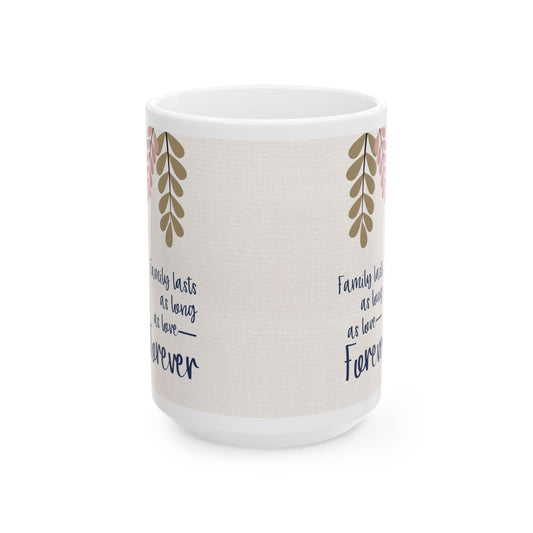 Family lasts as long as love—Forever…Baby Loss Remembrance (ceramic coffee mug)