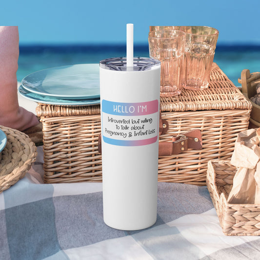 Hello I'm Introverted but willing to talk about Pregnancy and Infant Loss—Baby Loss Awareness and Remembrance (stainless steel tumbler)