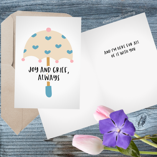 Joy and Grief, Always w/Heart Umbrella—Grief and Loss Support (greeting card)