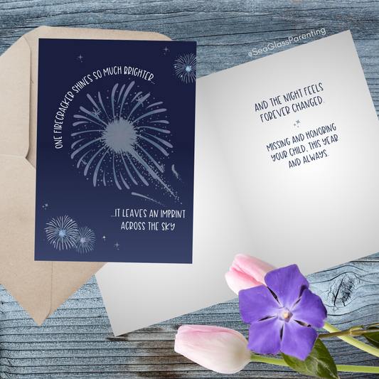 One Firecracker Shines so Much Brighter, It Leaves an Imprint Across the Sky—Holidays After Loss (greeting card)