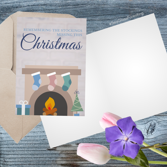 Christmas Tree & Mantle; Remembering the Stockings Missing this Christmas—Holidays after Loss (greeting card)