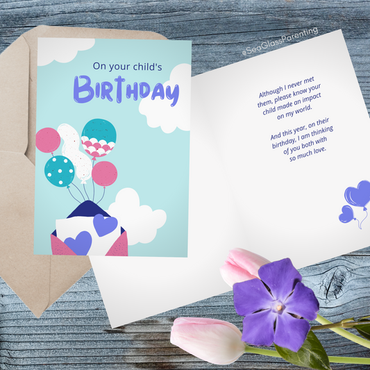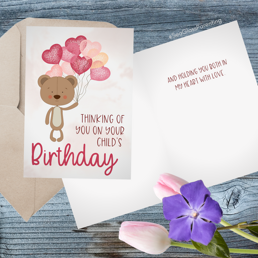 Bear w/Balloons, Thinking of You on Your Child's Birthday and Holding you Both in my Heart with Love—Baby Loss Birthday (greeting card)