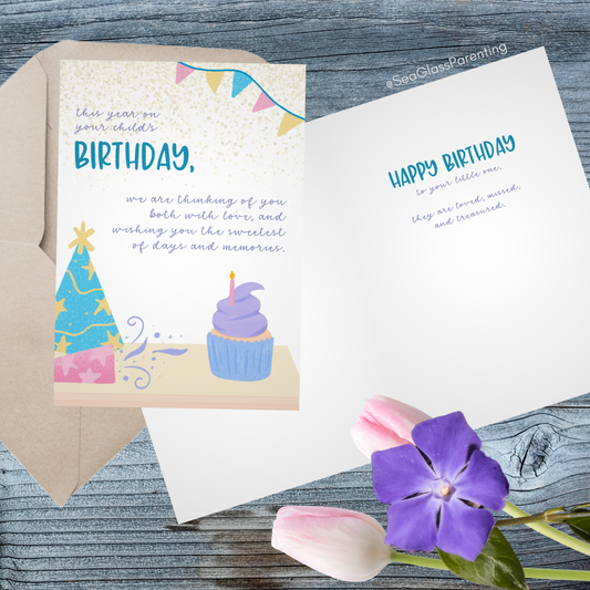Cupcake and Streamers, This Year on Your Child's Birthday We are Thinking of You Both with Love—Baby Loss Birthday (greeting card)