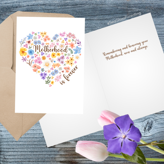 Floral Heart Motherhood/Fatherhood is Forever—Mother's Day, Father's Day (greeting card)