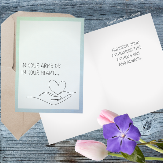 In Your Arms or in Your Heart, Honoring your Motherhood/Fatherhood w/Line Art Hand with Heart—Mothers Day, Fathers Day (greeting card)