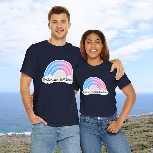 Broken and Still Breathing w/Rainbow design—Life and Authenticity (unisex T-shirt)