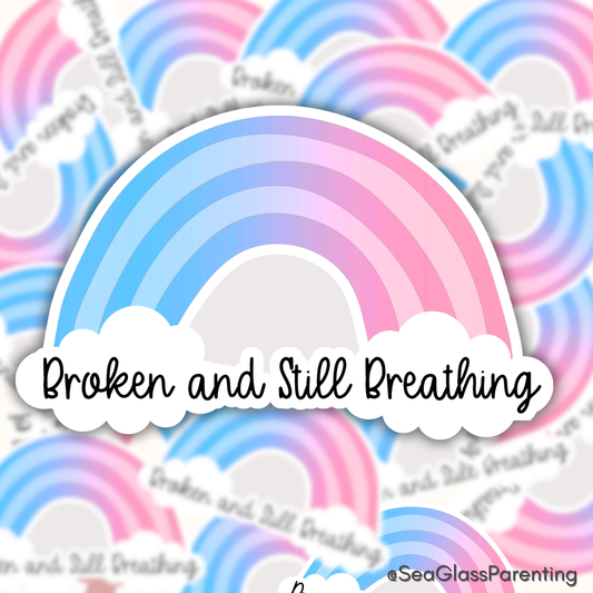 Broken and still breathing—Life metaphor (vinyl sticker)