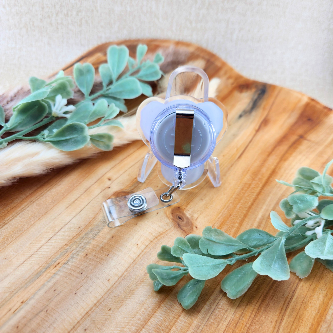 This listing is for one (1) acrylic badge reel, 1.7" wide x 2.0" tall, with a retractable soft plastic badge strap.
