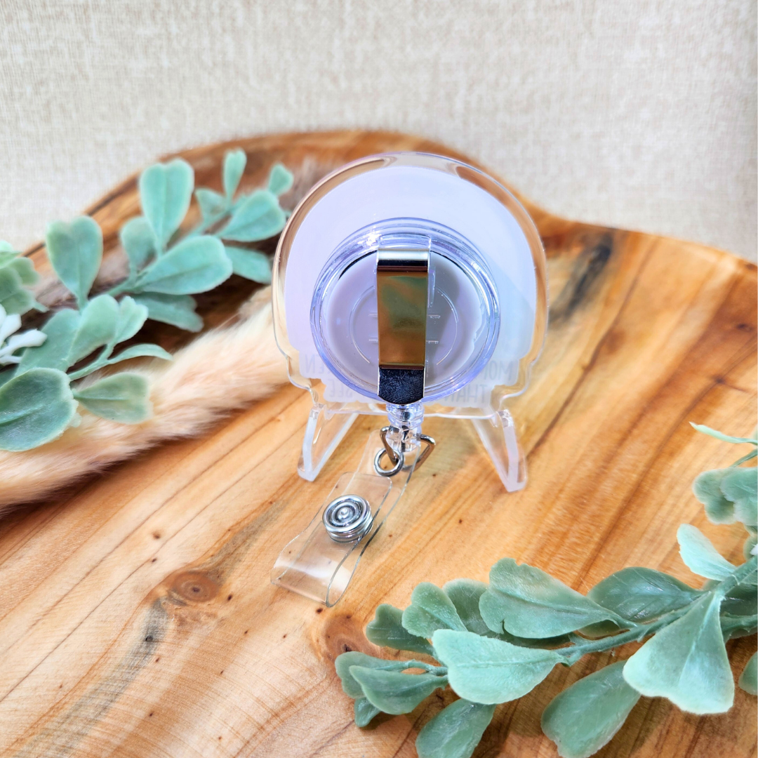 This listing is for one (1) acrylic badge reel, 2.0" wide x 2.0" tall, with a retractable soft plastic badge strap.